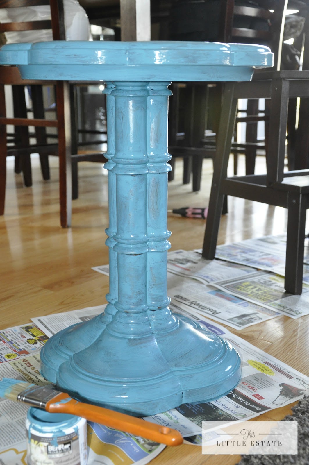 I love blue and adore turquoise and wanted a bold little side table just like the ones I had been eyeing.
