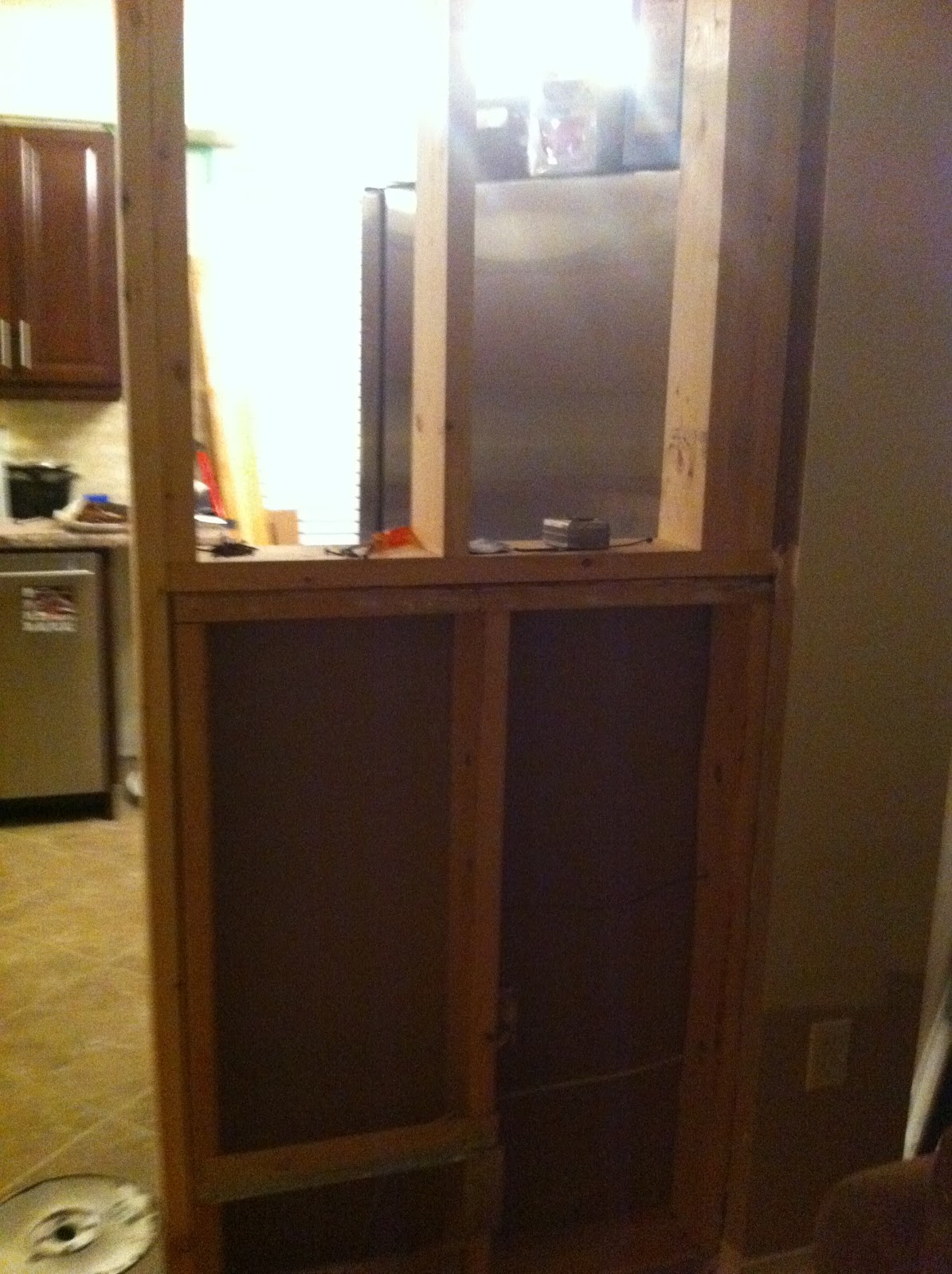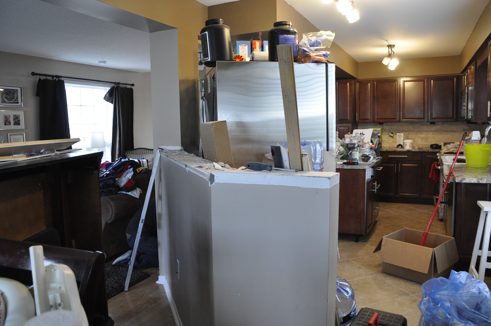 The half wall that separates our kitchen from our little dining area and living room looked like this during our kitchen overhaul. You can read the post about it here.