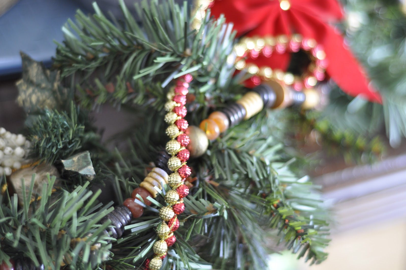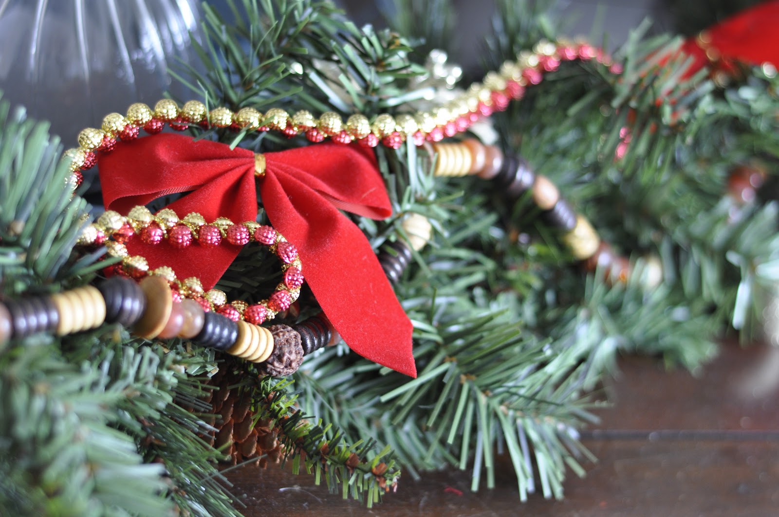 That bead garland the kids and I whipped up….do you recognize the wooden black and white beads??